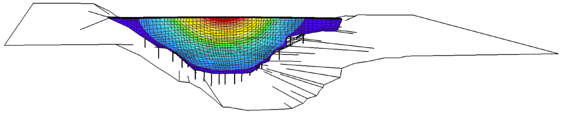 - Etude de stabilité avec modélisation tridimensionnelle du barrage