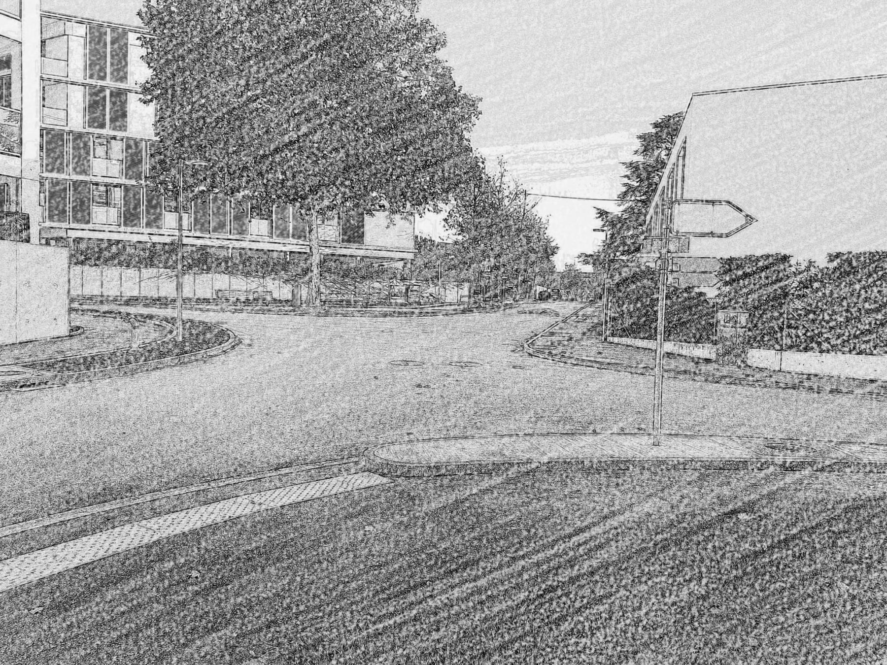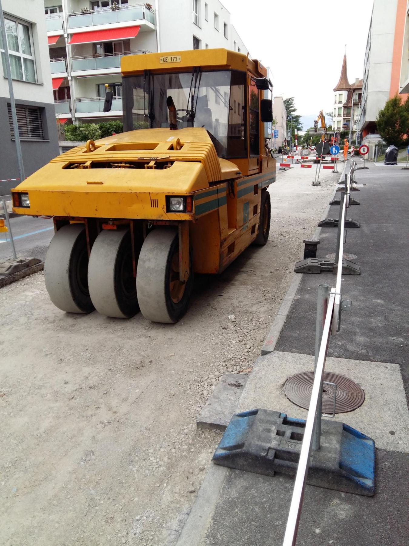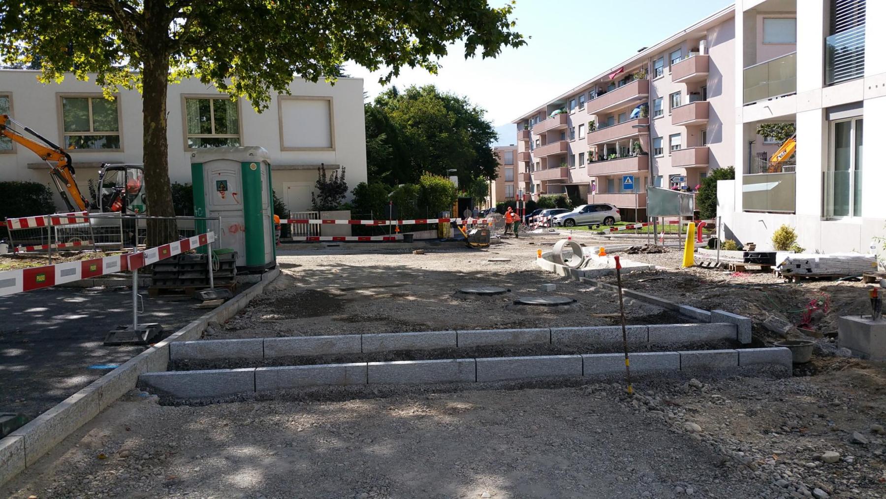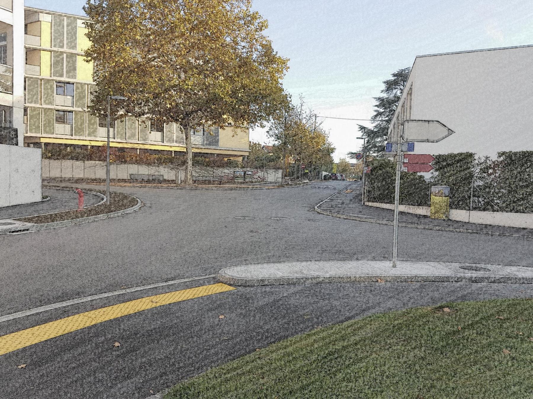 • Réaménagement de la chaussée (carrefour surélevé, passage pour piéton avec avancée de trottoir et place de stationnement devant les nouveaux immeubles)