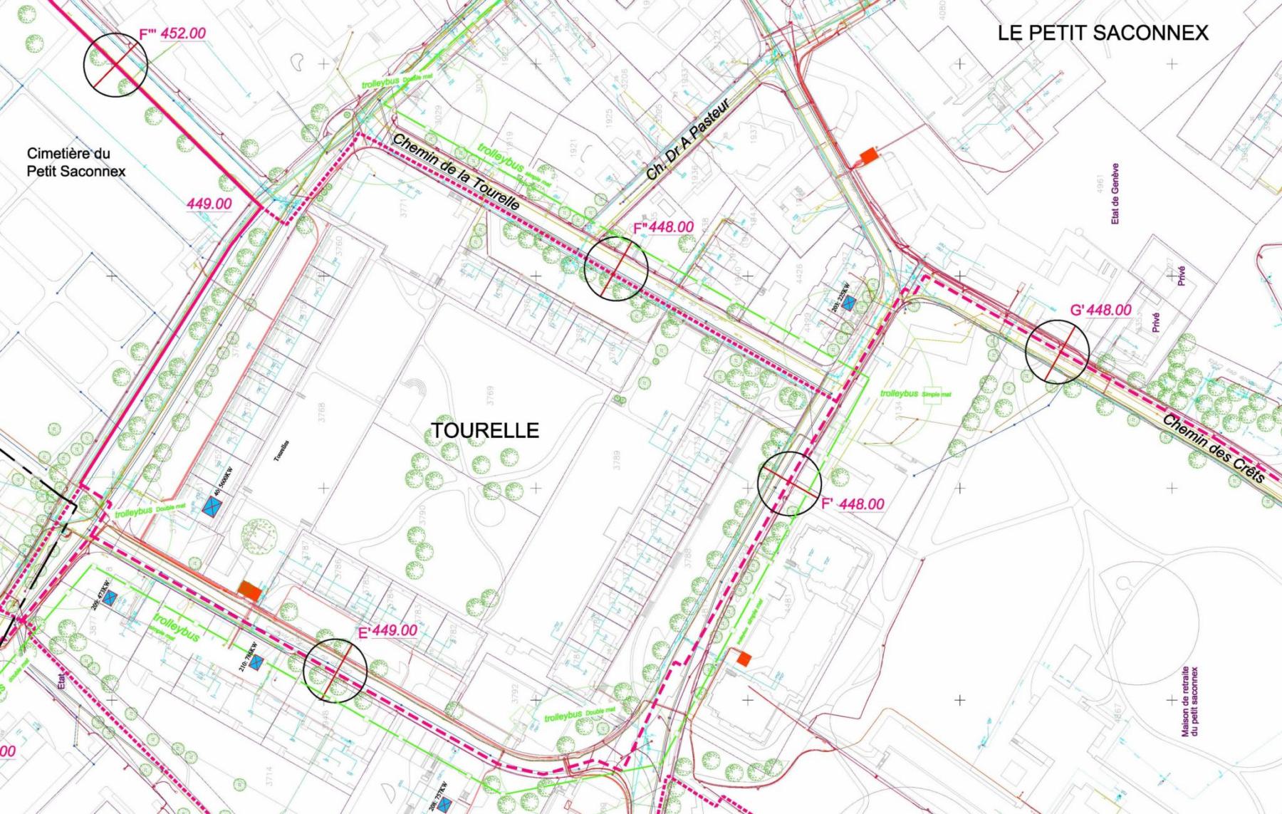 - Réseaux existants permettant le passage du réseau CAD (tant en planimétrie qu’en altimétrie).