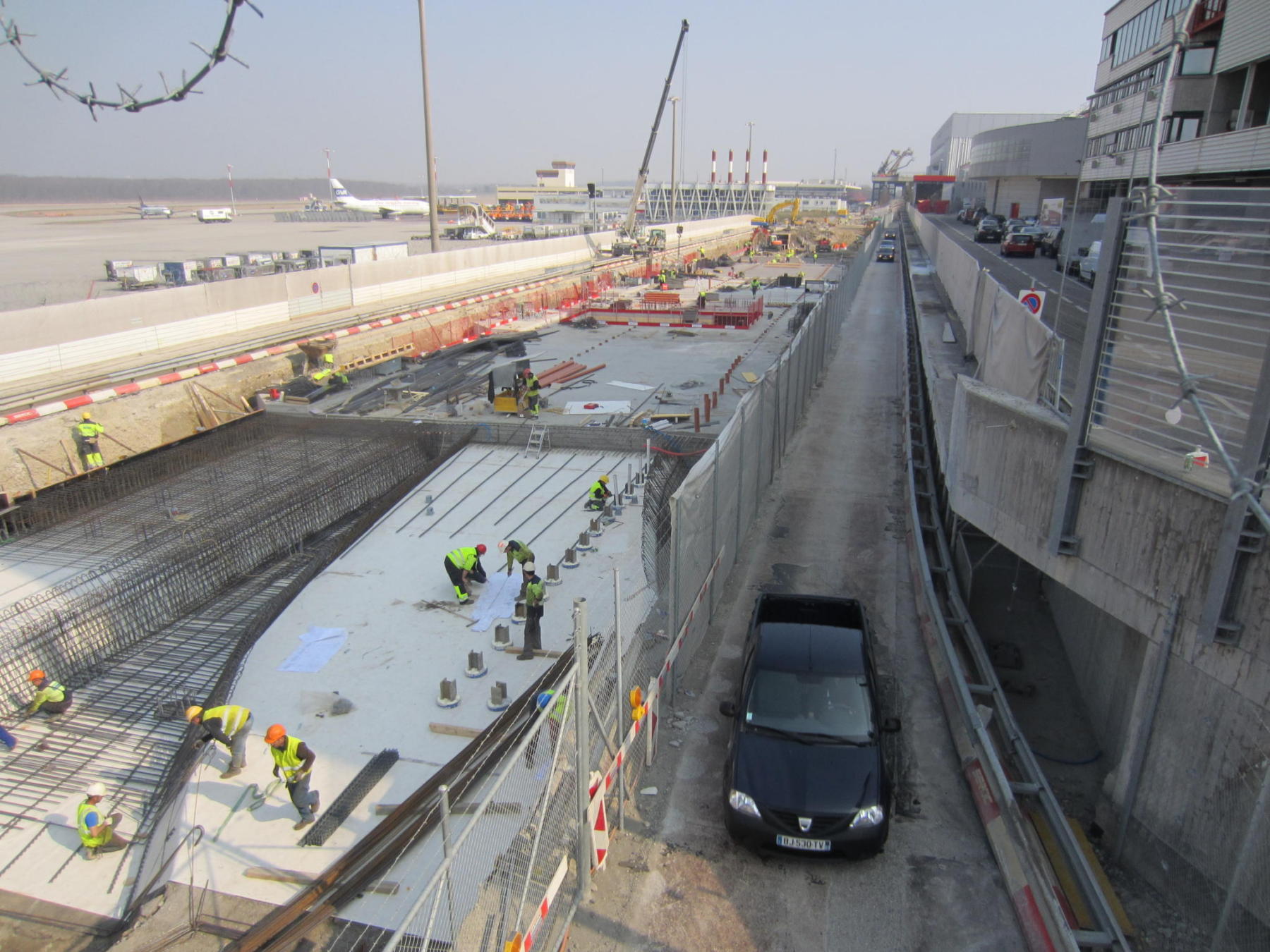 Le projet consiste en l’enfouissement de la route douanière existante et s’inscrit dans le cadre du projet Aile_EST (construction d’un nouveau terminal «Gros porteurs») de l’Aéroport International de Genève. Cet ouvrage sera également la fondation du futur terminal Aile_EST. Les travaux ont permis de créer :
